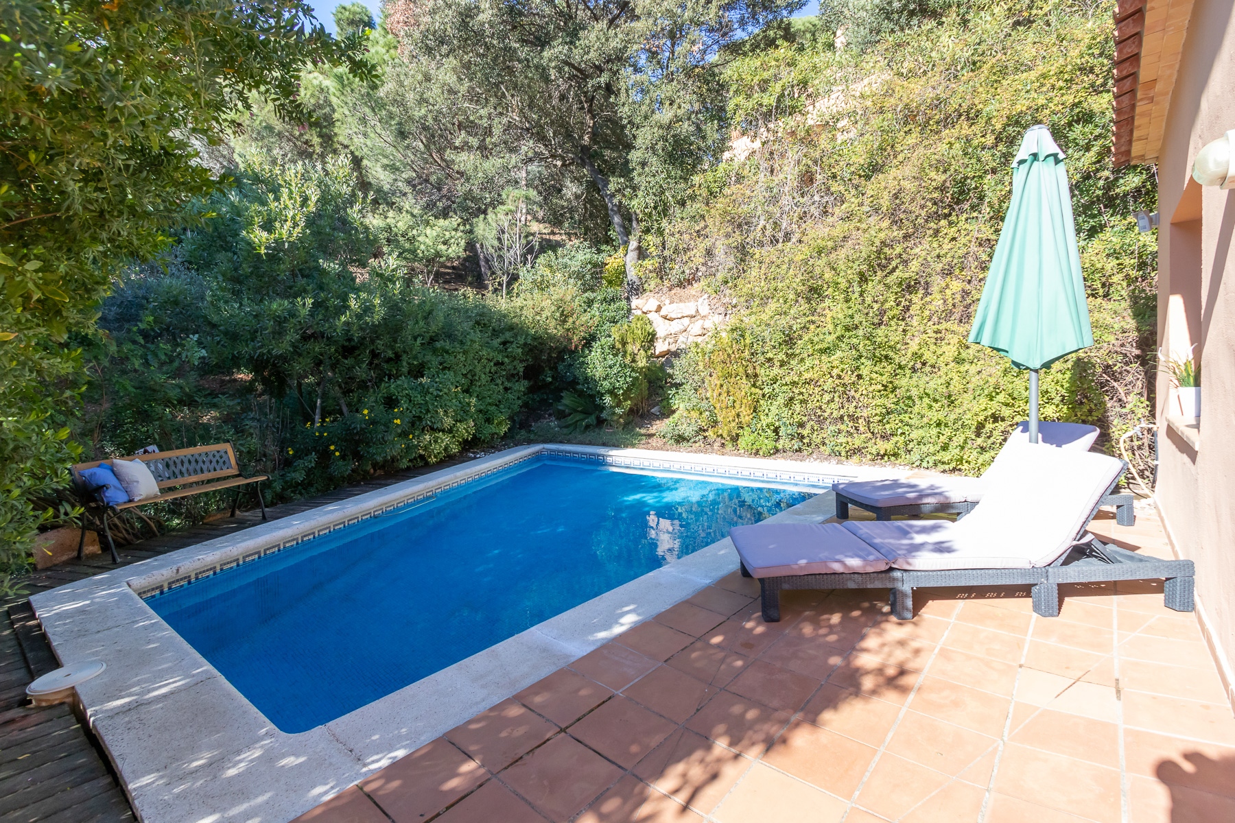 Esta majestuosa casa dispone de piscina privada, rodeada de pinos que te dará la sensación de estar en un auténtico oasis de paz en plena naturaleza.