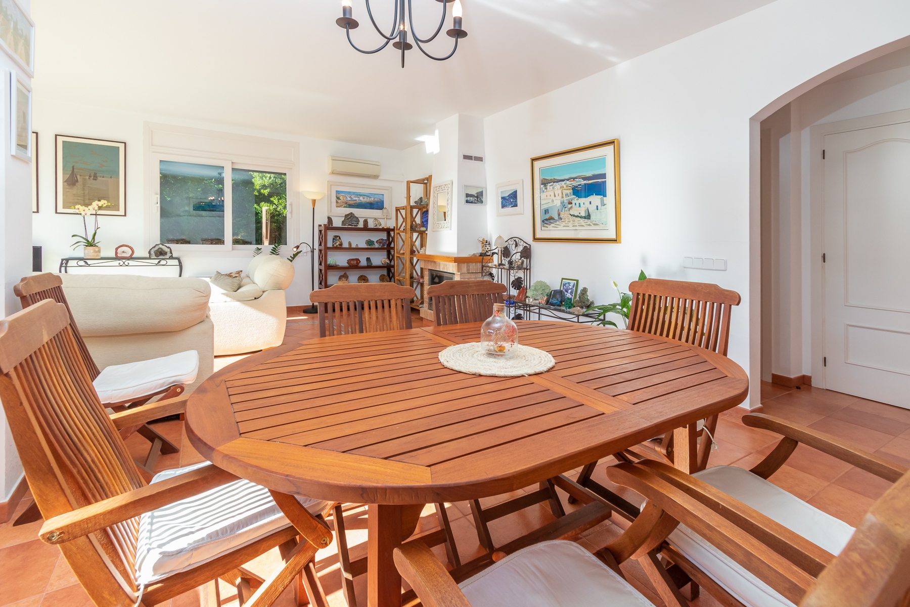 En la planta principal nos encontramos un gran salón con dos amplios sofás y zona de comedor para 6 personas, desde la que tenemos acceso a una fantástica terraza con vistas playa Sa Riera y a la piscina. Cocina independiente completamente equipada donde se encuentra la segunda zona de comedor, ideal para desayunar y desde la cual accedemos a la preciosa terraza con vistas al mar. En esta misma planta tendríamos una habitación de matrimonio con baño privado, una habitación doble y un baño completo totalmente equipado.