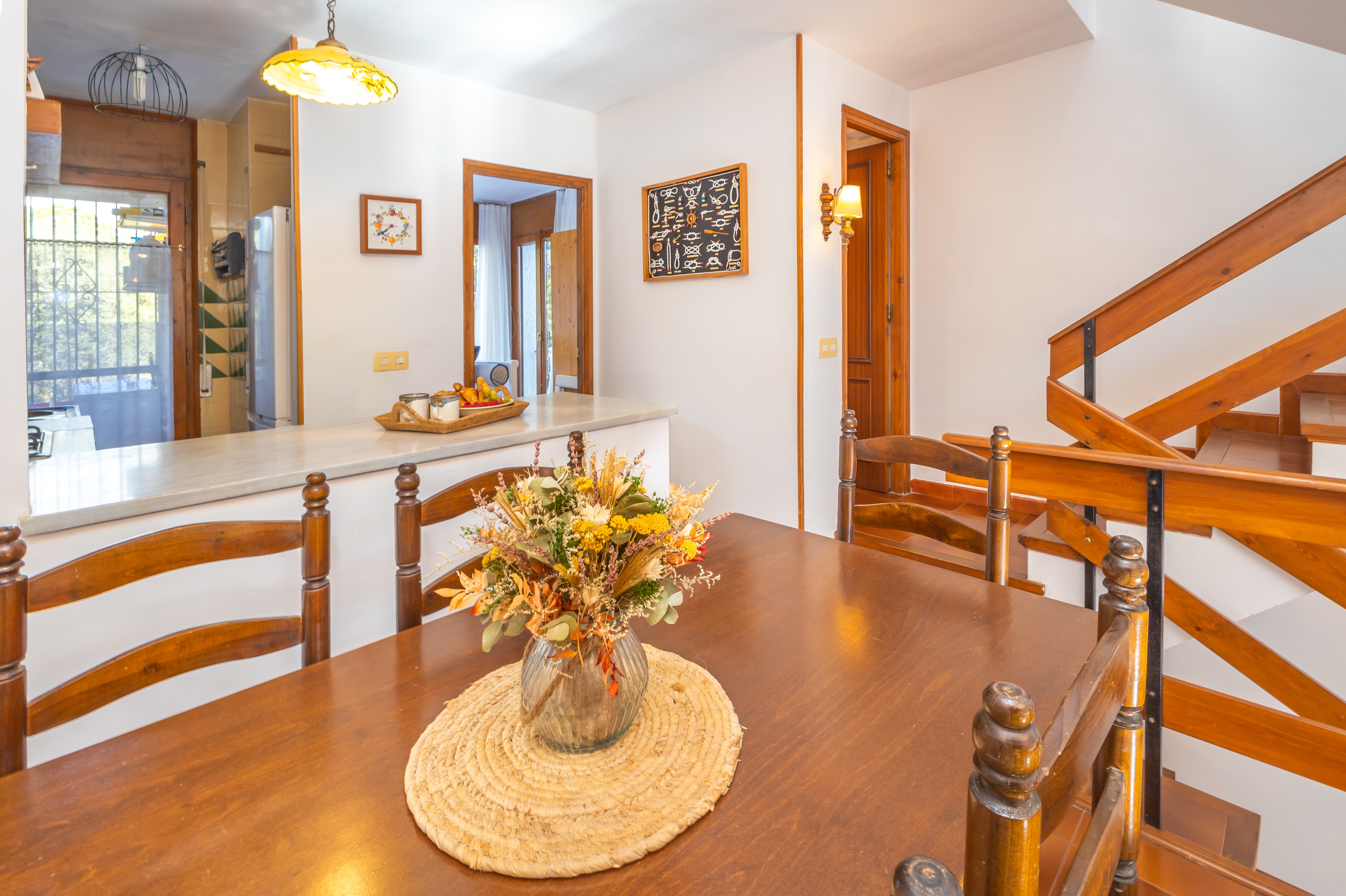 Con un interior luminoso y bien equipado, encontrarás todo lo que necesitas para una estancia confortable. La casa cuenta con tres dormitorios acogedores, uno de ellos con terraza propia, un amplio salón-comedor donde relajarse, una cocina totalmente equipada, un aseo y un baño completo y totalmente equipado.