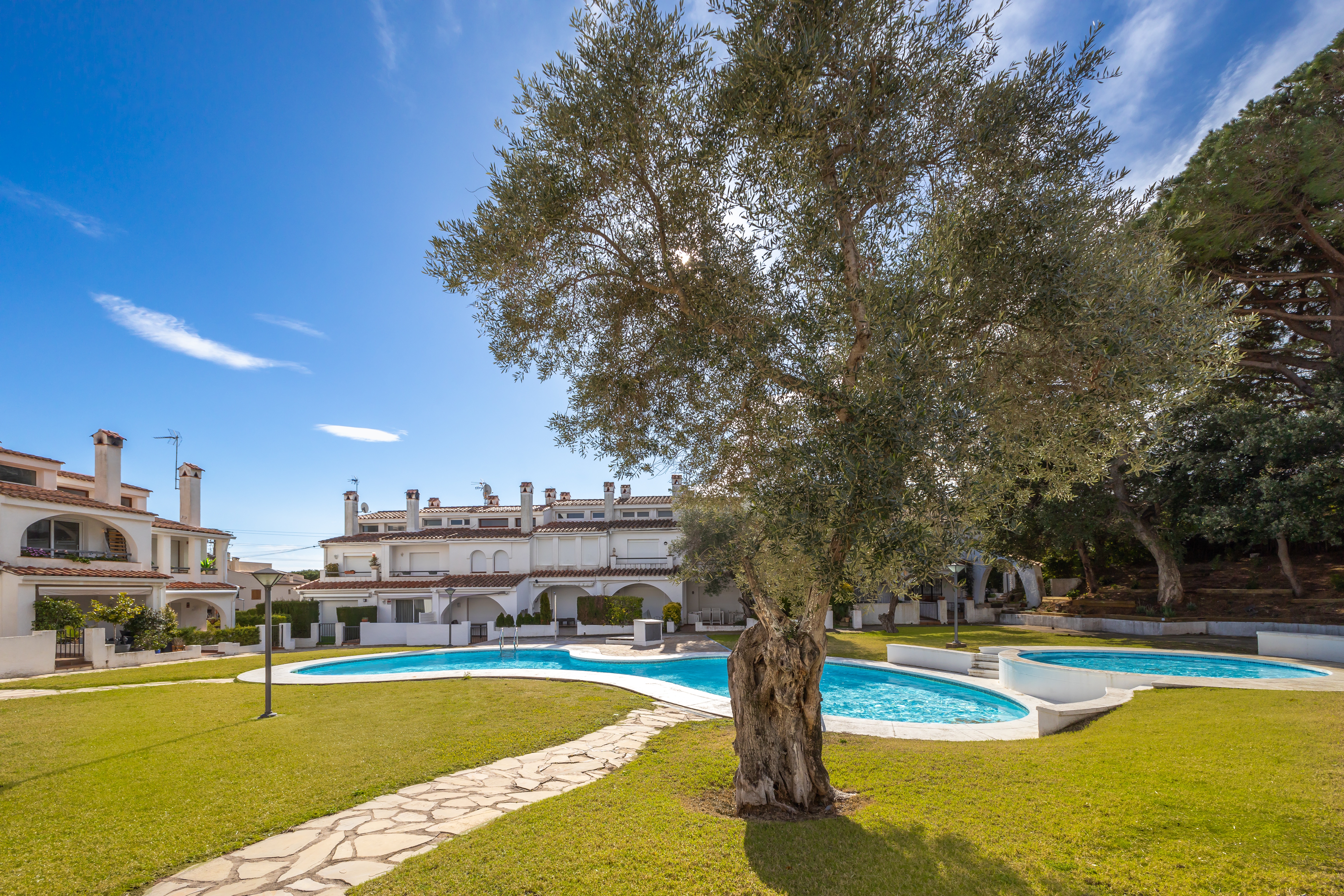 Disfruta de tus comidas al aire libre en la terraza con vistas al jardín y a la piscina, o relájate en las tumbonas mientras disfrutas del sol mediterráneo.